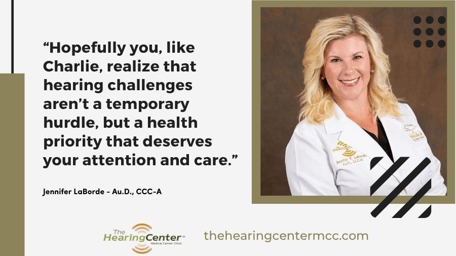 You may notice that sounds seem muffled or that conversations are harder to follow. Hopefully you, like Charlie, realize that these hearing challenges aren’t a temporary hurdle, but a health priority that deserves your attention and care.